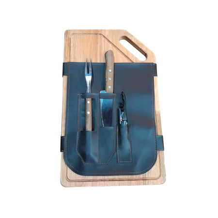 Set Asado Individual Tabla y Cubiertos 22x35cm