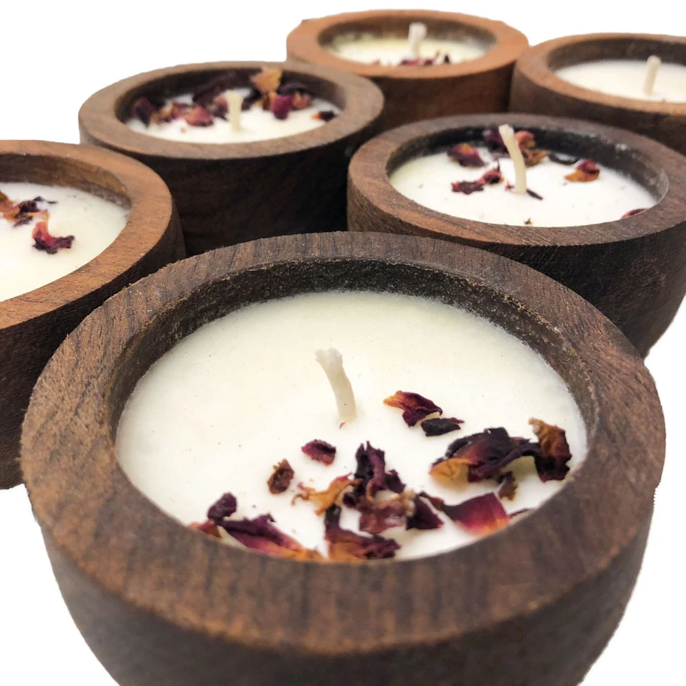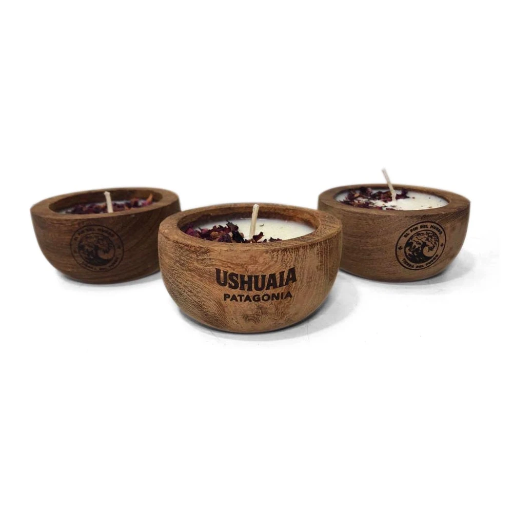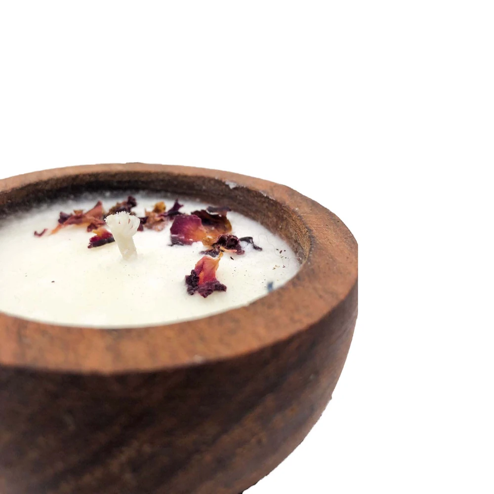 Vela aromatizada de cera de Soja en Cuenco de madera de algarrobo. Formas de entrega: