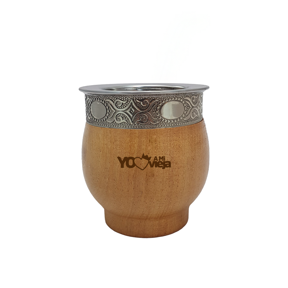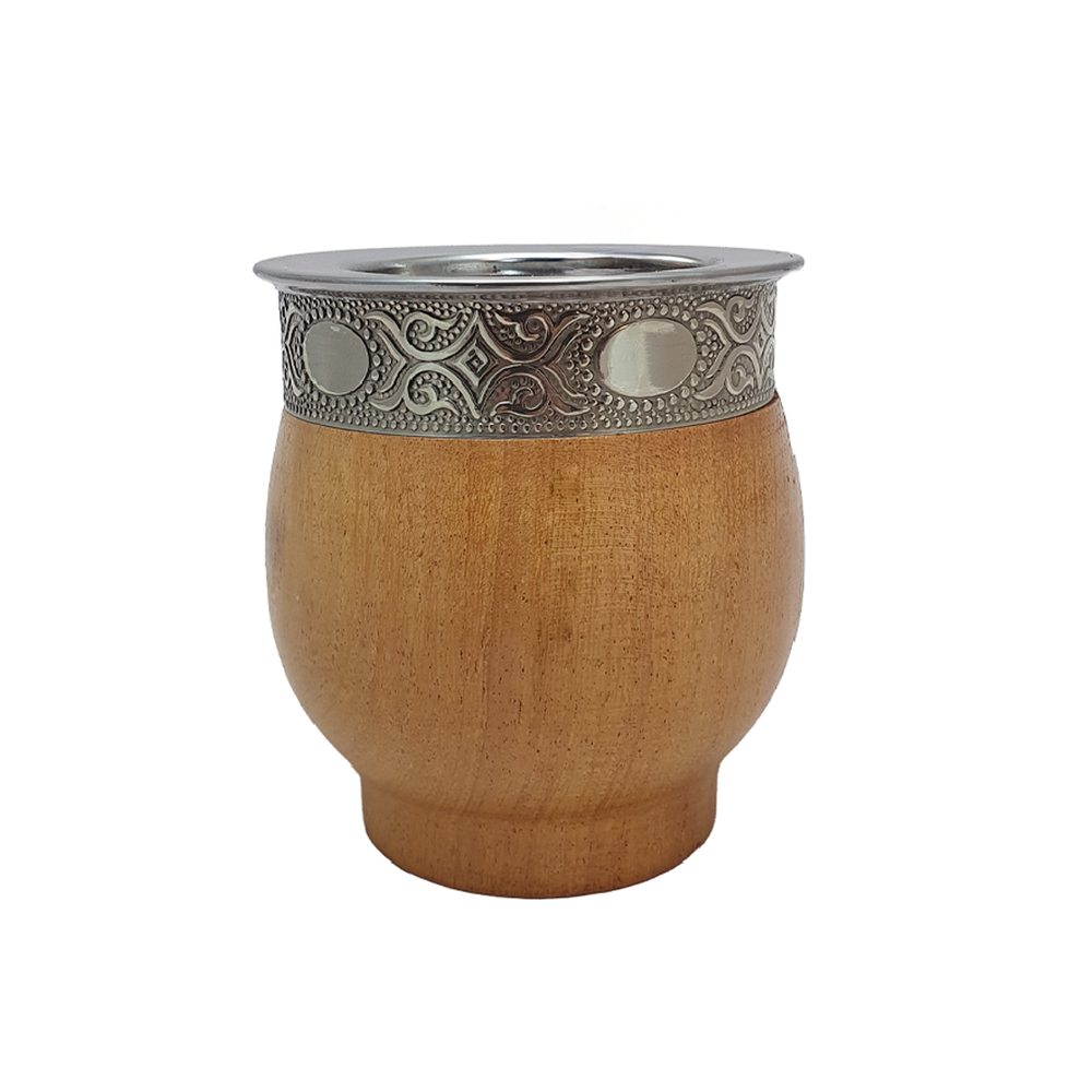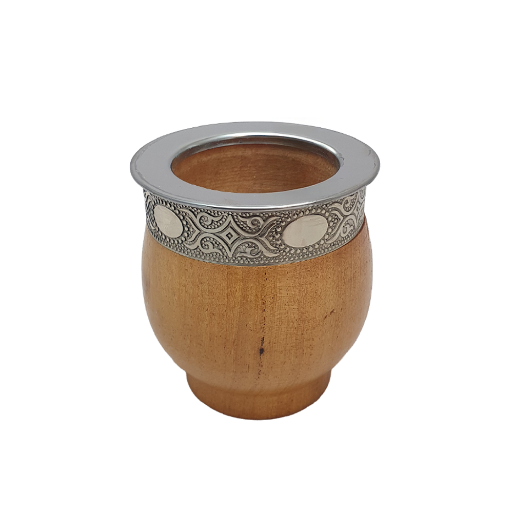 Mate de estilo imperial confeccionado en madera de algarrobo, reconocido por su resistencia y tonalidad cálida. Está realzado con detalles de alpaca en fleje y virola de acero, que aportan un acabado elegante y mayor durabilidad. Incluye bombilla de alpaca estilo pico del loro, ideal para un cebado uniforme y de excelente flujo. Una opción clásica y distinguida para quienes buscan un mate de calidad y estilo.