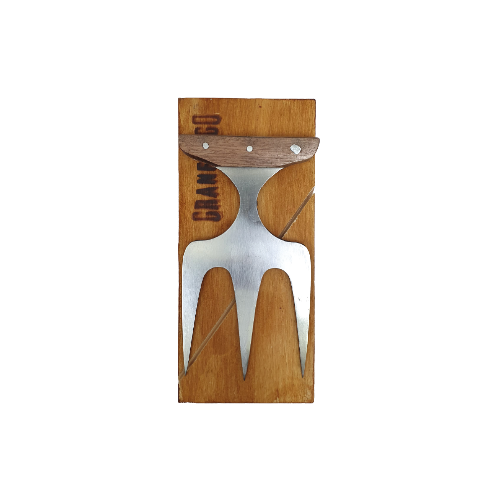 Descripción: Art. 7067C | Garra para el asador chica. Con 3 (tres) filos/dientes y mango de madera de fina terminación.