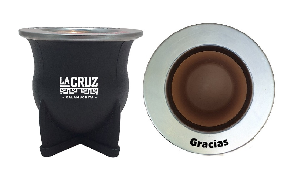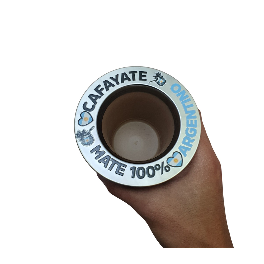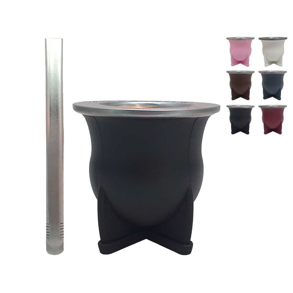 Mate clásico fabricado en polipropileno y PVC, con virola de acero inoxidable que permite personalización mediante DTF UV o Grabado laser. Su terminación ofrece la estética del mate forrado en cuero con la practicidad de los materiales sintéticos modernos. Disponible en varios colores para adaptarse a todos los estilos. Incluye bombilla chata ancha de acero inoxidable de 18 cm, ideal para un uso cómodo y duradero.