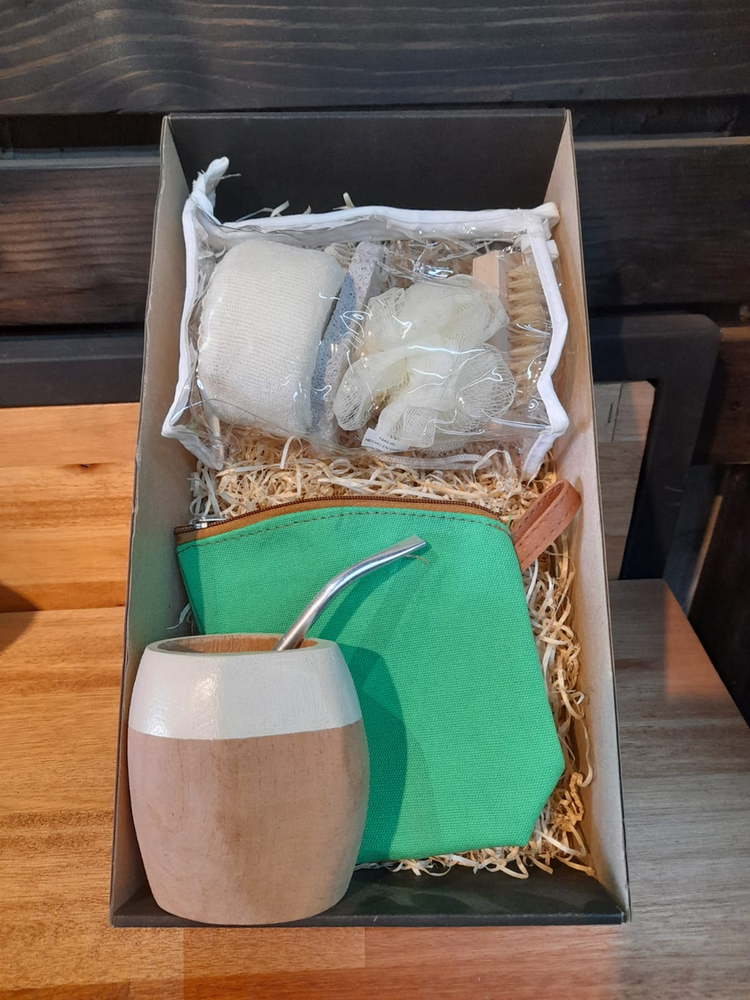 Set Baño 2 esponjas una es exfoliante, Piedra/Lima, Cepillo de Uñas.