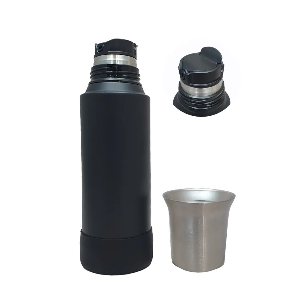 Termo símil Stanley de 1 litro fabricado en acero inoxidable 304 de alta calidad, que asegura resistencia, durabilidad y un excelente rendimiento térmico. Su doble capa aislante mantiene la temperatura de las bebidas calientes o frías por más tiempo. Incluye tapa multifunción que también se utiliza como mate, práctica y resistente. La base de silicona removible antideslizante aporta mayor estabilidad en cualquier superficie. Diseño moderno y funcional.