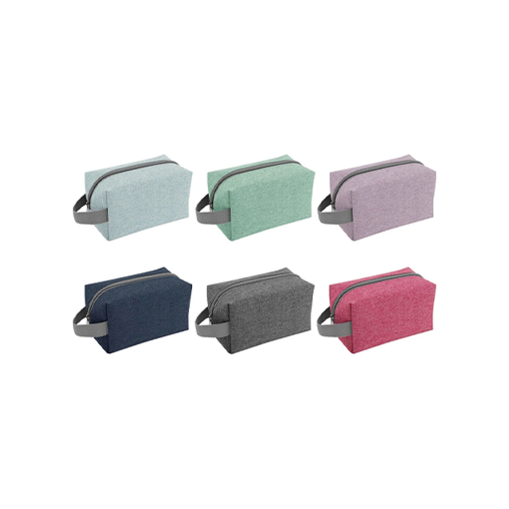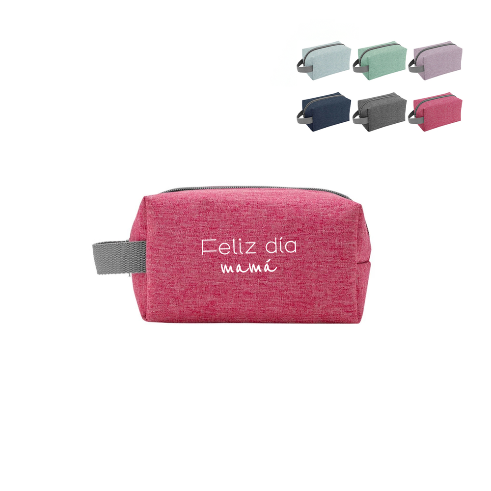 Necessaire con amplio compartimento. Interior forrado en Poliéster 210D. Cierre con tirador metálico y asa lateral en tela de color gris.
