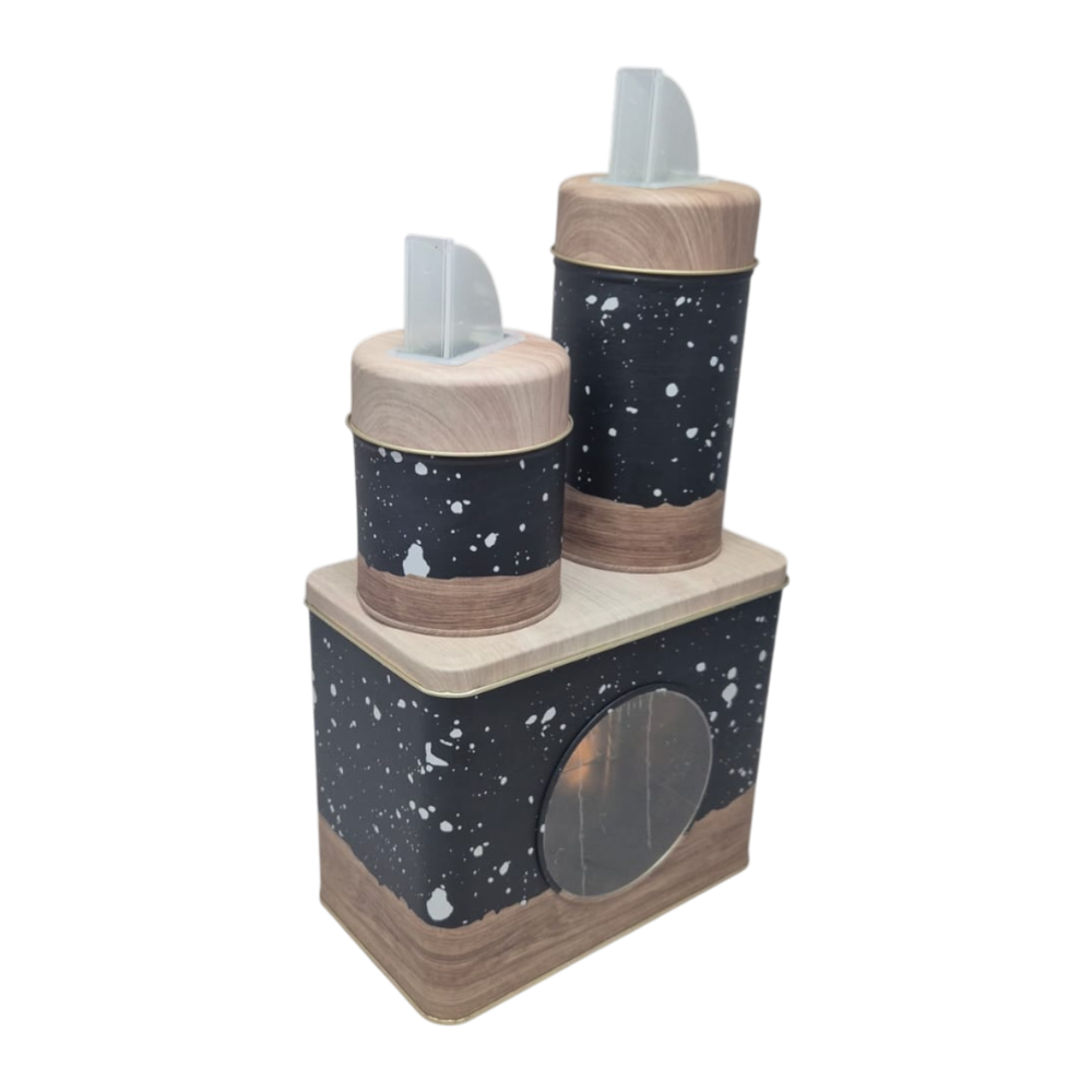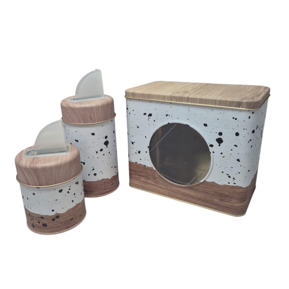 Organizá tu cocina con estilo y sumá un toque retro al rincón del mate con este set completo en hojalata diseño vintage. Funcional, decorativo y perfecto para uso diario.