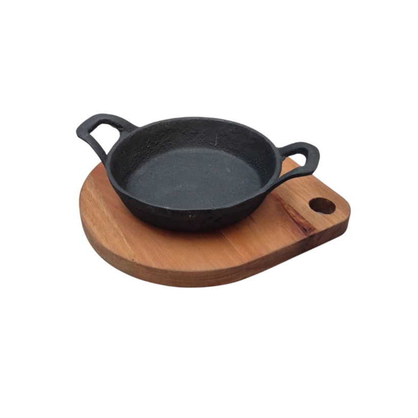 🔥 Cazuela Provoletera de Fundición 16 cm con Tabla de Eucalipto